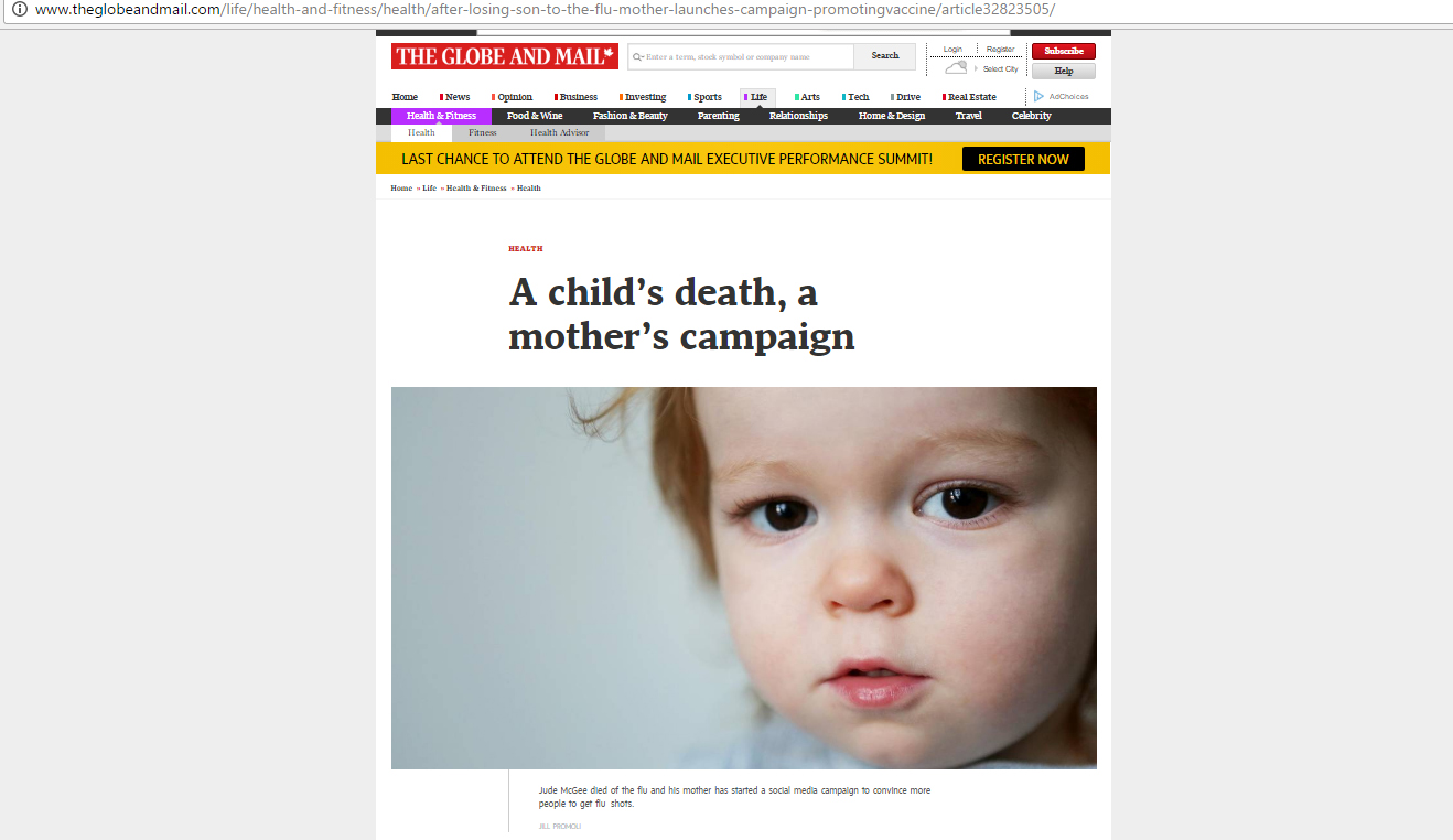 Hi everyone! I recently had the opportunity to sit down with Kelly Grant from The Globe and Mail to talk about Jude and the flu,… Read More »In the news – The Globe and Mail
